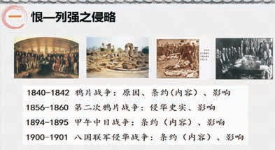 中考是每位初中生都要面临的一次重要挑战,在学习完九年级的新授课程后,就会全面进入复习阶段。复习阶段时间紧、任务重,对于老师和学生而言都是非常大的考验。因此, 如何提高复习课的学习效率与学习效果,调动学生的学习兴趣,促使学生激活思维,构建知识网络,是九年级老师需不断思考和探索的问题。下面以九年级历史专题复习课《侵略抗争探索》为例,交流如何利用现代信息技术,牢牢把控复习课节奏,打造高效高质的复习课堂。