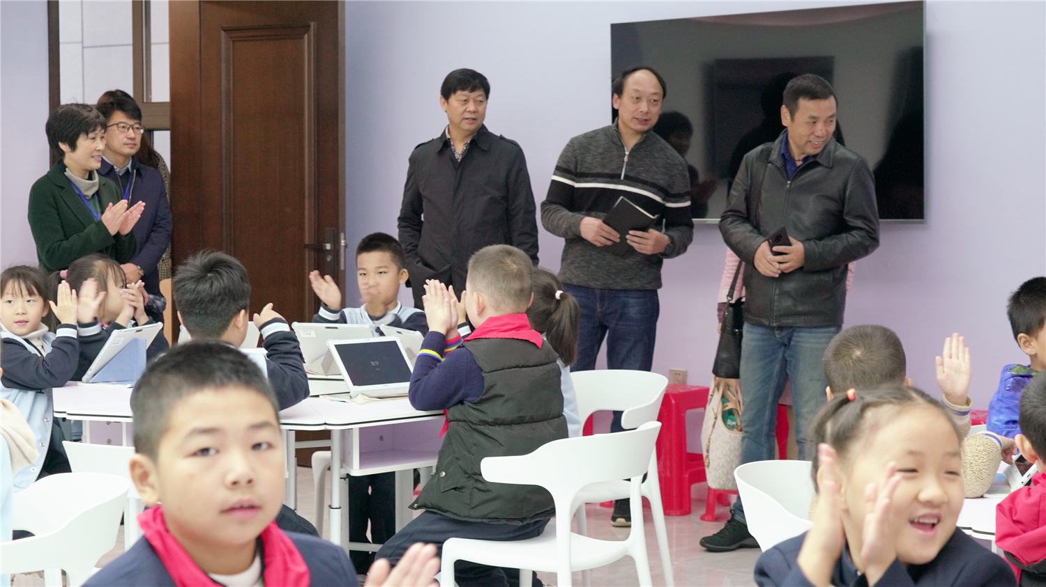 周主任一行参观了教学楼及校园文化展示厅、未来教室、电子书法室、电子沙画室、VR虚拟体验室等功能室,在未来教室观摩了我校一年级胡靖雯老师的智慧课堂,在教学楼观看了八年级周兵老师的数学课。周主任对我校的现代化智慧校园建设高度评价,对老师和孩子们在课堂上娴熟使用现代化教学设备开展教学表示赞赏。