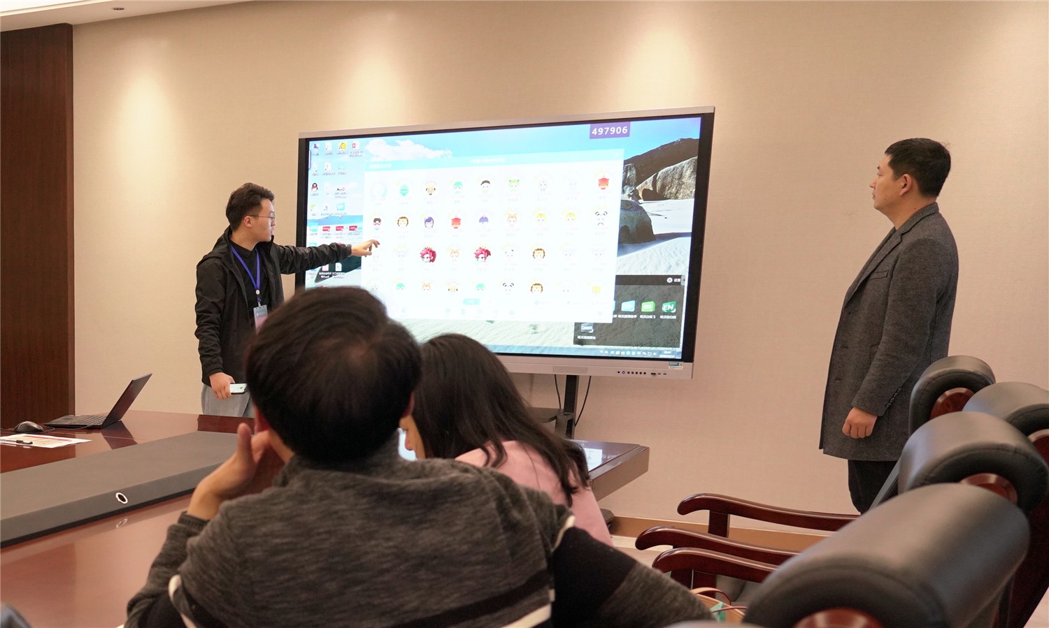 研讨会上,副校长陈伟带领信息技术人员向各位领导介绍了我校教育信息化和智慧校园的建设情况、展示了希沃白板5、班级优化大师等软硬件的功能场景及应用数据。